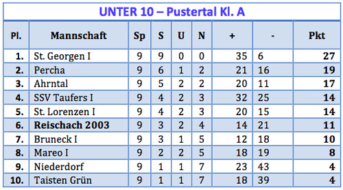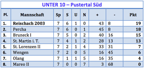 Nach zwei Lattenpendlern und zwei Paraden unseres Torwartes Tobias wurde unsere Mannschaft erst wachgerüttelt. Innerhalb von 3 Minuten konnten wir durch 2 Tore von Lenni Hasler auf die Siegerstraße einbiegen. Doch kurz vor der Pause konnte Niederdorf durch einen Sonntagsschuss aus 20 Metern die Partie wieder spannend gestalten. Nach dem Wiederanpfiff ist es uns gelungen, nach Treffern von Alexander und Marco auch dieses Spiel als Sieger zu beenden. Einen faden Beigeschmack hat dieses Spiel aber trotzdem, denn sowohl unser Trainer Max als auch der Trainer unseres Gegners wurden vom Schiri wegen Protestierens kurz vor Ende der regulären Spielzeit vom Platz gestellt.
