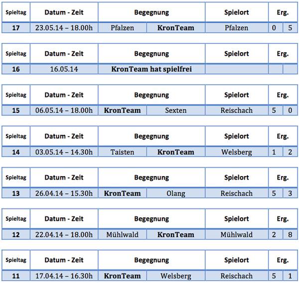 26.05.2014 - Pfalzen - Kronteam 0:5